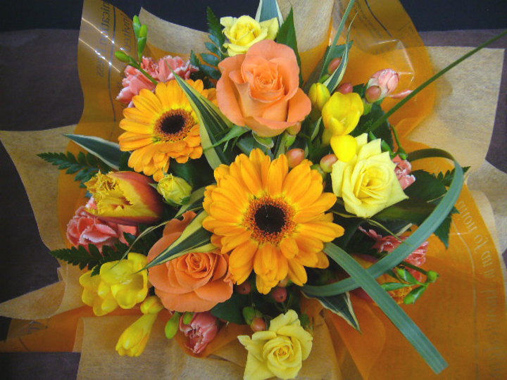 花の宅配、花束、一輪の薔薇、花の贈り物はフラワーコード ホーム > アレンジメント > お任せアレンジメント(黄色・オレンジ)